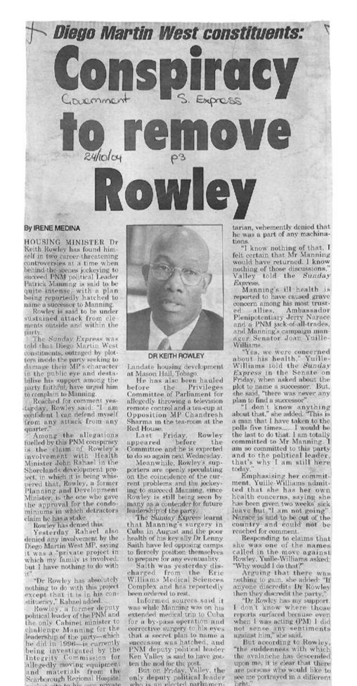 Diego Martin West constituents: Conspiracy to remove Rowley