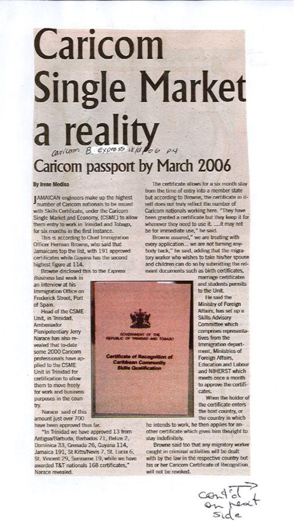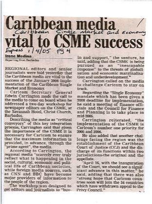This article covers the statements made by Caricom Single Market Economy (CSME) Unit head for Trinidad and Tobago, Jerry Narace stating that the insurance industry can greatly benefit from the CSME. He reminded insurance personnel of their influence in the financial sector, whilst introducing the idea of economic growth, entering markets in Latin America and the European Union.