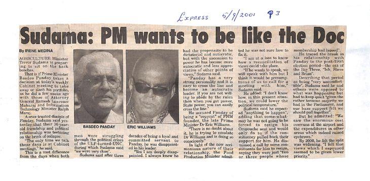 AGRICULTURE Minister Trevor Sudama is preparing to sit on the back benches.