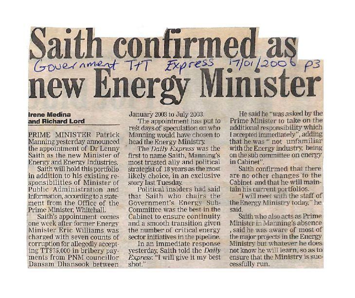 Carib leader snubs COP - Trinidad and Tobago Newsday Archives